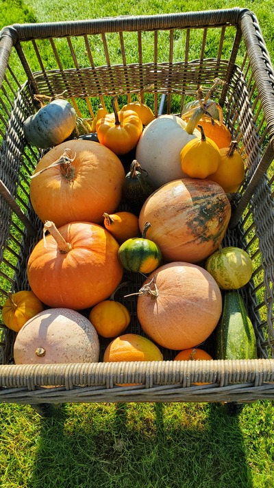 今年のパンプキン、ゴードの収穫はこんな感じでした。ハロウィンだったので、お屋敷には、いろいろなディスプレイがされていました。ドアのカボチャは···
